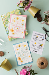The card comes with an envelope made using UK post-consumer waste and a set of planting instructions which double as a postage protector to keep the seeds safe in transit.