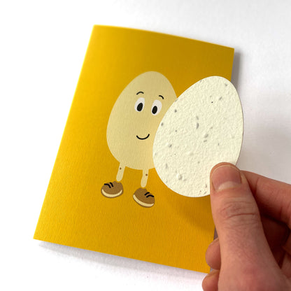This fun plantable motif card has a removable seed paper egg which can be planted to grow native British wildflowers!